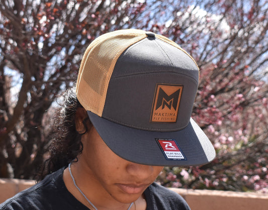 NMaktima Fly Fishing Leather Patch Logo Seven Panel Trucker Hat