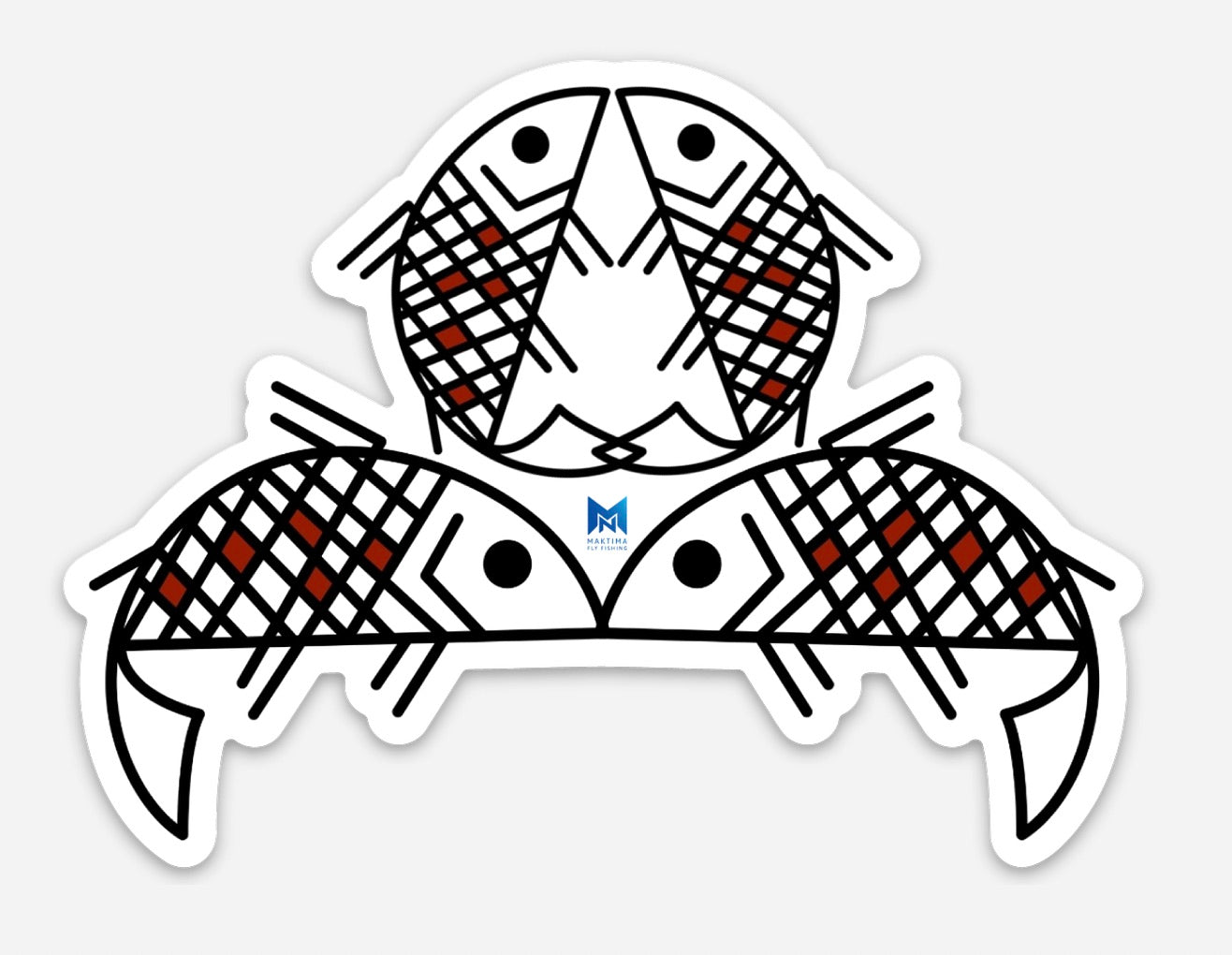 A redesign of the Petroglyph Fish design in the formation of a pueblo "Cloud Design".